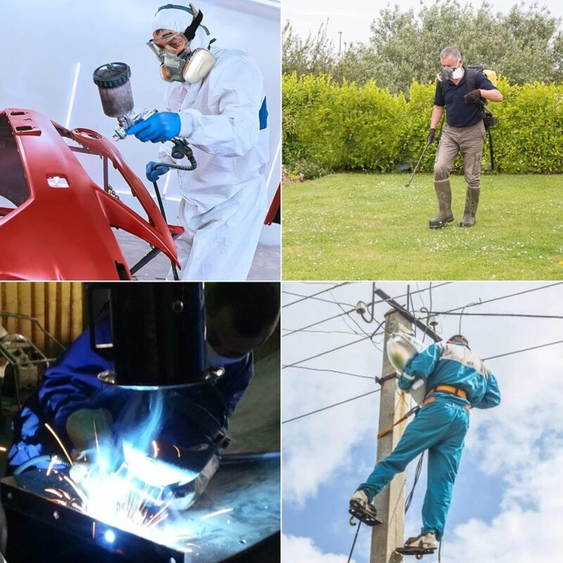 Il convient aux environnements de travail impliquant des produits chimiques, des métaux, des peintures, des produits agricoles, du méthane et d’autres vapeurs et gaz irritants. Lors de travaux mécaniques tels que le soudage, le sciage, le meulage, le décapage de graffitis et la peinture, il empêche les particules de poussière de pénétrer dans les voies respiratoires.